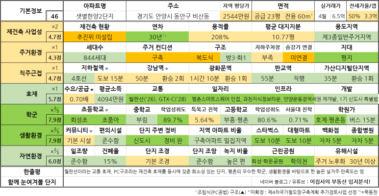 - ver. 220901. 업데이트 : 재건축 사업성, 직주근접, 호재 점수 기준을 강화했습니다.
